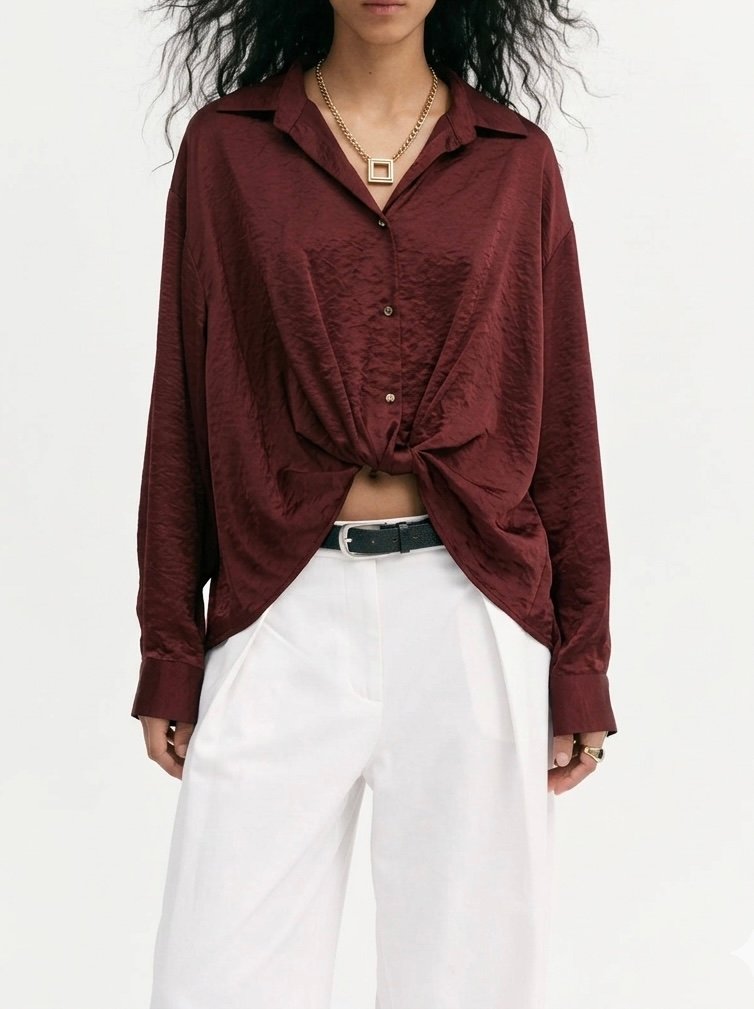 Short-sleeved shirt with a chain, tied at the front